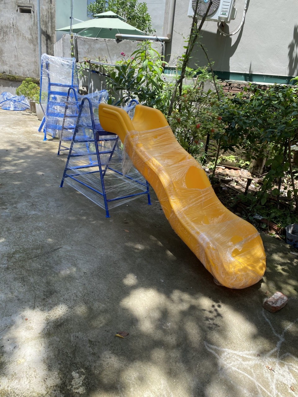 Bộ Cầu trượt đơn này có thể tháo rời khung và máng trượt nên rất gọn gàng vận chuyển đi xa rất tiện.